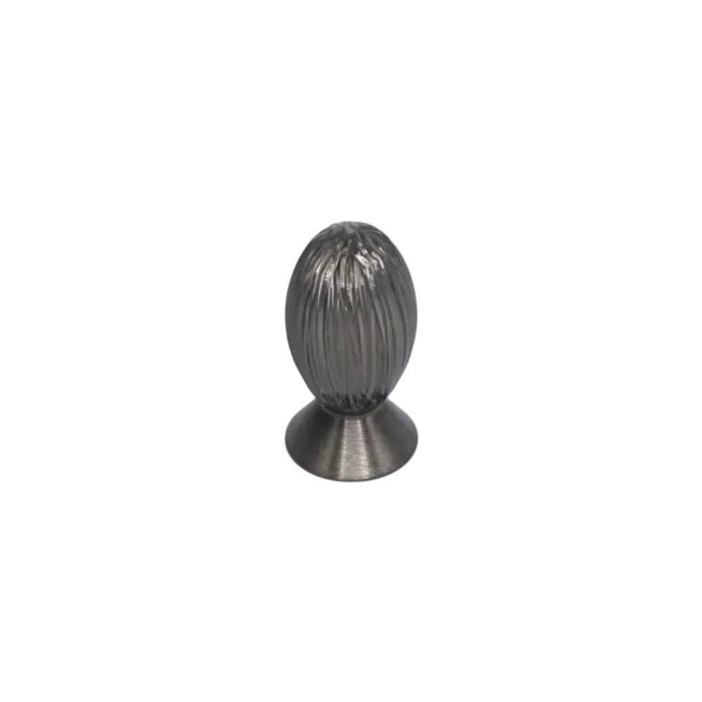 Chaque gravure est réalisée à la main, créant un jeu subtil de reliefs qui met en valeur la texture et la matière du bouton. Son profil ovale offre une prise en main confortable, tout en s’intégrant avec discrétion aux meubles qu’il habille.