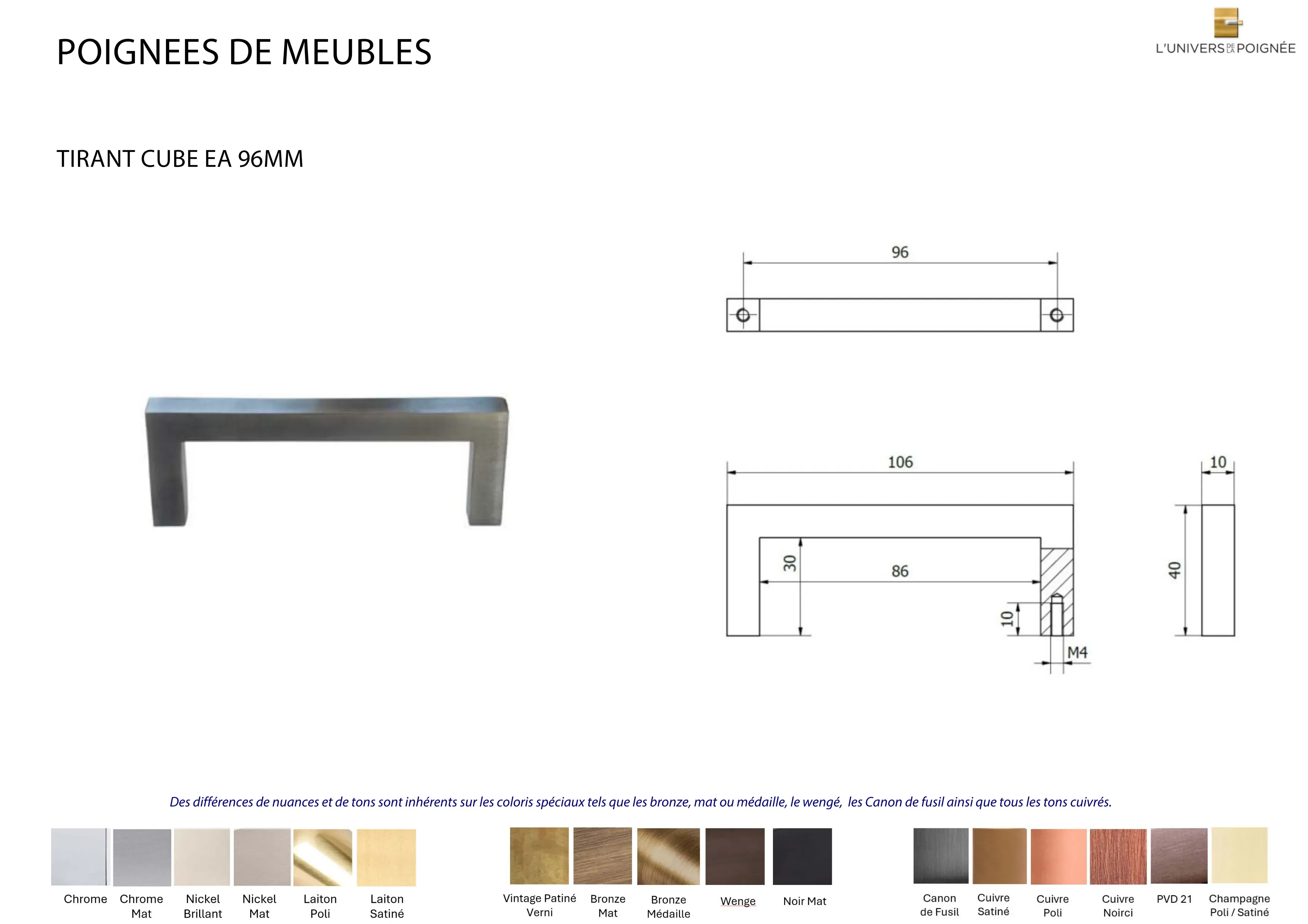 Poignée de meuble CUBE EA 96mm
