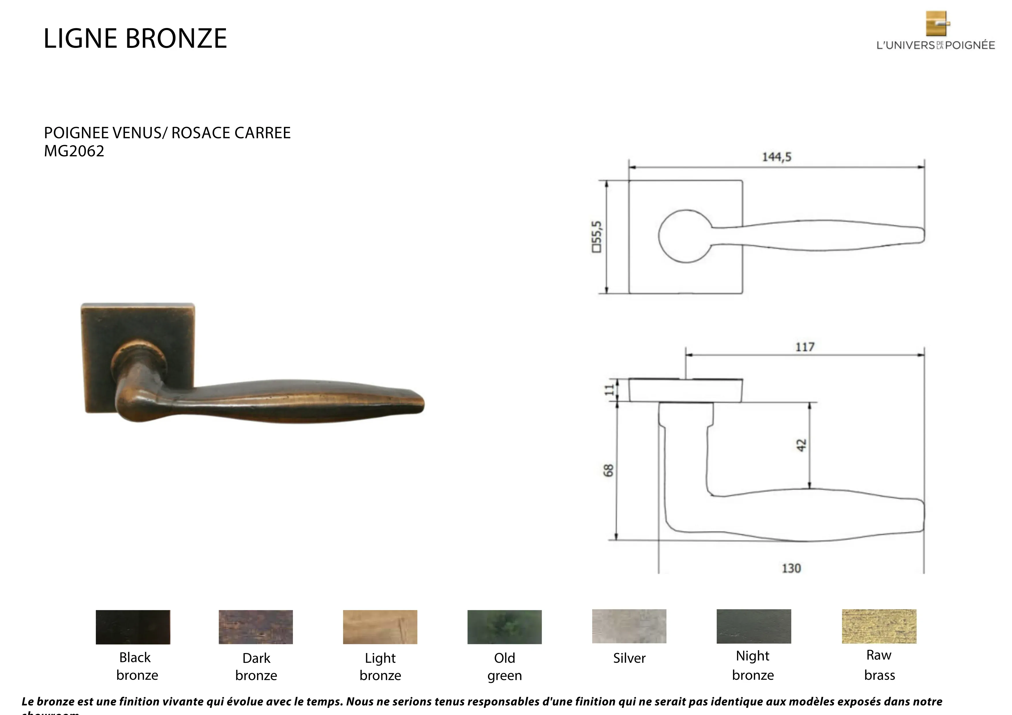 Poignée de porte Vénus Bronze