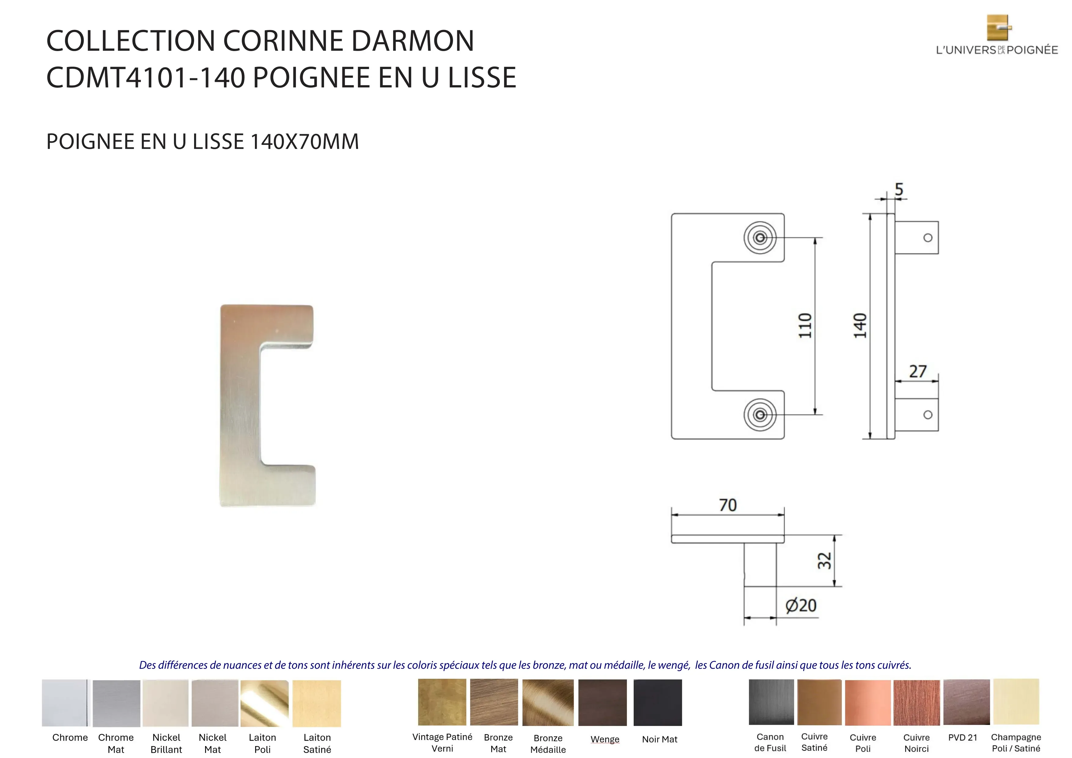 Poignée de tirage en U lisse 150mm