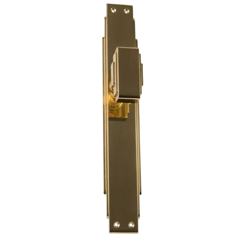 Le bouton de porte Art Déco ARD.09 sur plaque incarne le style raffiné des années 20-30, avec une ligne moderniste et une esthétique à la fois décorative et intemporelle. Sa conception en laiton massif lui confère une robustesse indéniable, tout en offrant un toucher agréable et une prise en main parfaite.