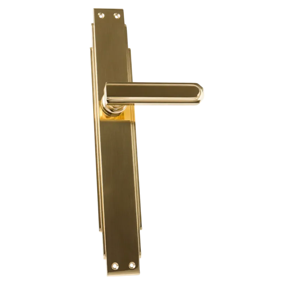 La poignée de porte ARD.02 incarne l’élégance et le raffinement du design Art Déco. Conçue en laiton massif, elle se distingue par sa silhouette sculpturale et sa plaque finement travaillée (50x320 mm), qui en fait bien plus qu’un simple accessoire : un véritable élément décoratif.