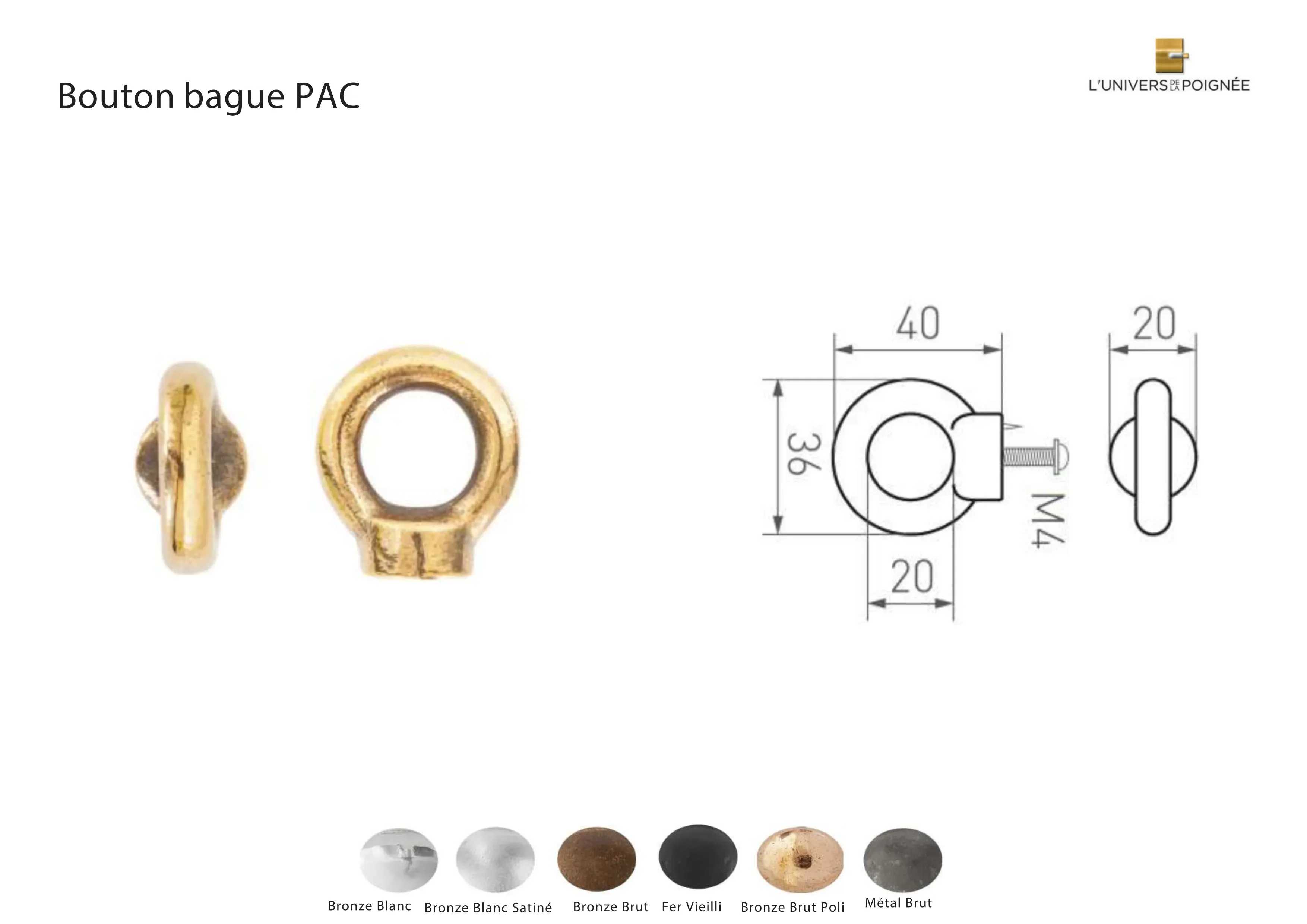 Le bouton de meuble Bague PAC se distingue par sa forme de boucle subtile, alliant légèreté et élégance. Avec son design ludique mais sobre, il se marie aisément avec des poignées arrondies et s'intègre parfaitement aux quincailleries de portes et fenêtres arrondies. Cette pièce intemporelle et contemporaine s’adapte à une multitude d’intérieurs, en ajoutant une touche raffinée et un petit détail design à vos meubles.